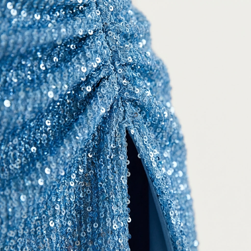 Portée avec des sandales à talons ou des escarpins, elle crée une allure élancée et soignée. Son design asymétrique apporte du caractère tout en restant facile à accessoiriser avec des bijoux discrets ou plus affirmés. Une robe polyvalente et élégante, adaptée aux soirées, galas et événements formels.